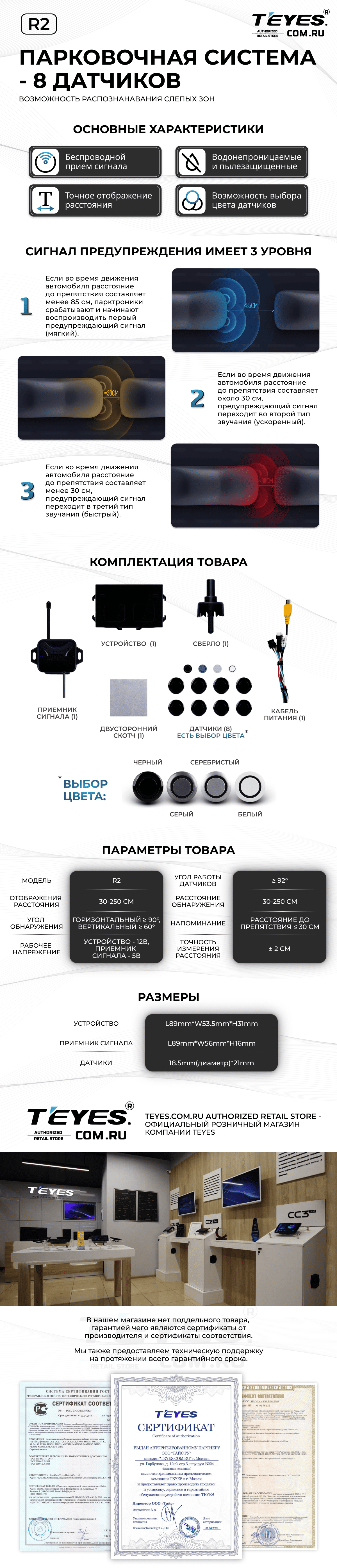 Передние и задние парктроники Teyes R2 для CC4 Pro / CC4 / CC4L / CC3 2K / CC3 / CC3L / CC2 Plus / SPRO Plus / TPRO2 / LUX ONE (Черные) 8-датчиков - купить всего за 21 900 руб. в интернет-магазине в Новороссийске Teyes.com.ru. ✓ Самый лучший выбор мультимедиа ✓ Лучшая замена штатному ГУ ✓ Тел. +7 (800) 775-31-74
