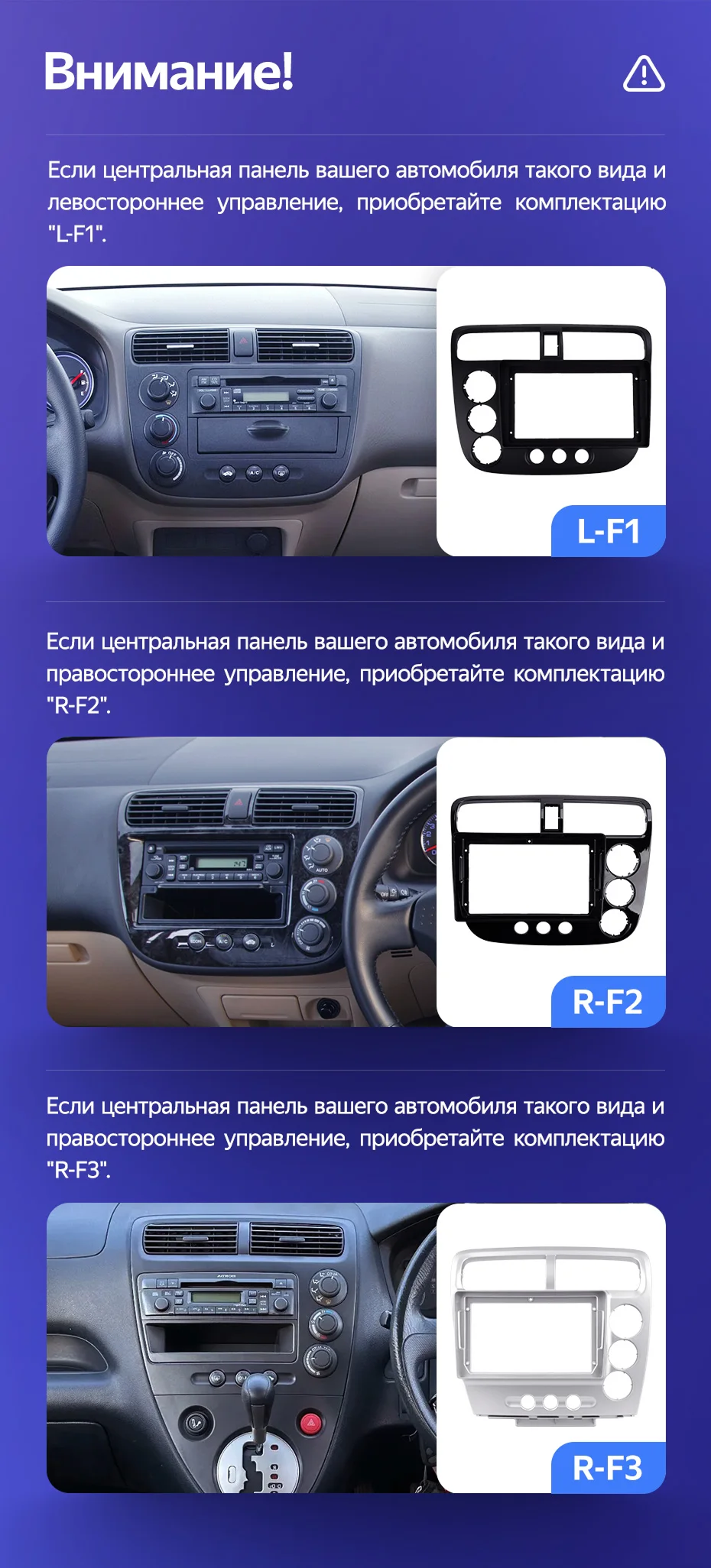 Переходная рамка Honda Civic 7 (2000-2006) F3 Правый руль (9") - купить всего за 7 000 руб. в интернет-магазине в Новороссийске Teyes.com.ru. ✓ Самый лучший выбор мультимедиа ✓ Лучшая замена штатному ГУ ✓ Тел. +7 (800) 775-31-74
