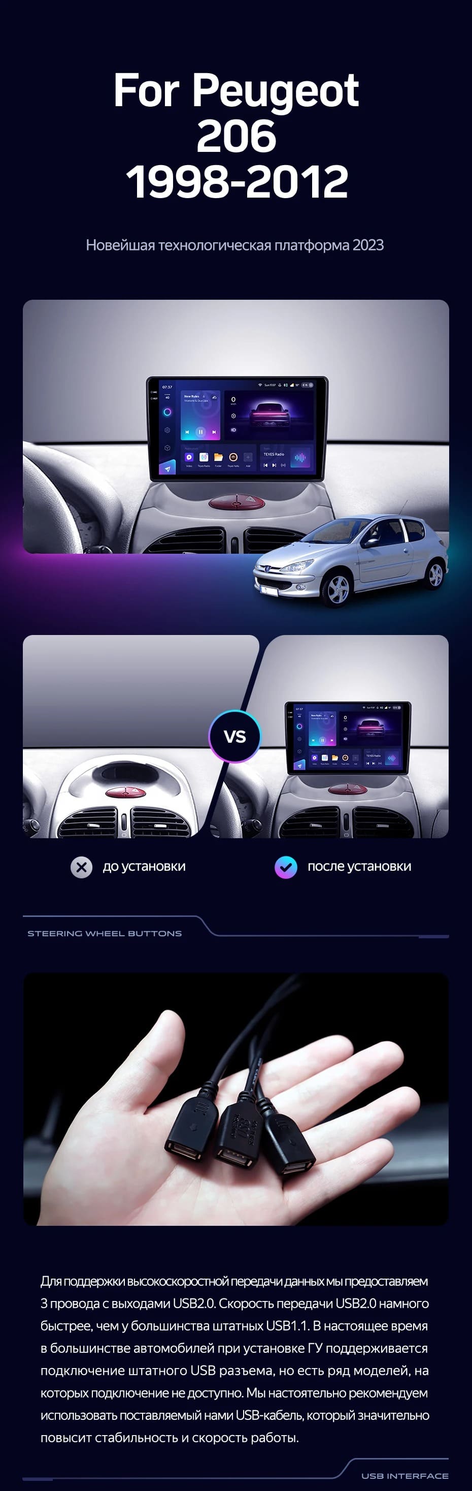 Переходная рамка Peugeot 206 T13 T16 T12 (1998-2012) (9") - купить всего за 5 600 руб. в интернет-магазине в Новороссийске Teyes.com.ru. ✓ Самый лучший выбор мультимедиа ✓ Лучшая замена штатному ГУ ✓ Тел. +7 (800) 775-31-74
