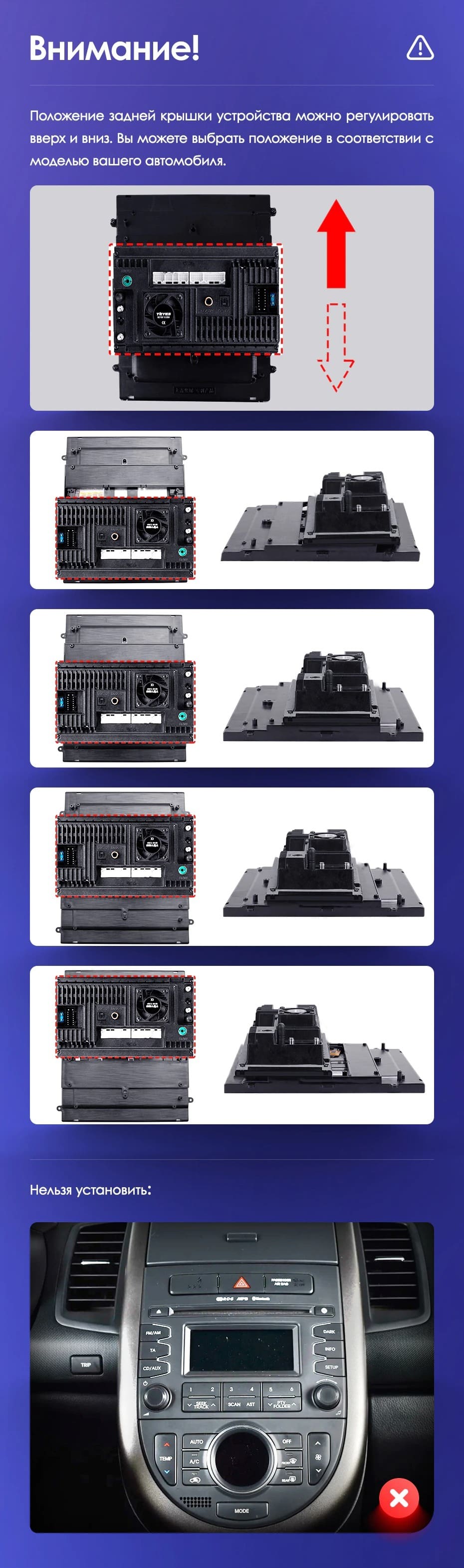 Вертикальная установка магнитолы закрывается специальной рамкой под определённый автомобиль. Утончённый, лаконичный дизайн Teyes TPRO 2 подойдёт под любую премиальную обшивку салона. Большой выбор цветовых решений интерфейса позволяет создавать индивидуальное оформление, чтобы мерцания и анимации на мониторе не отвлекали от езды. Teyes TPRO 2 - это симбиоз передовых технологий, созданный для вашего комфорта и безопасности.
