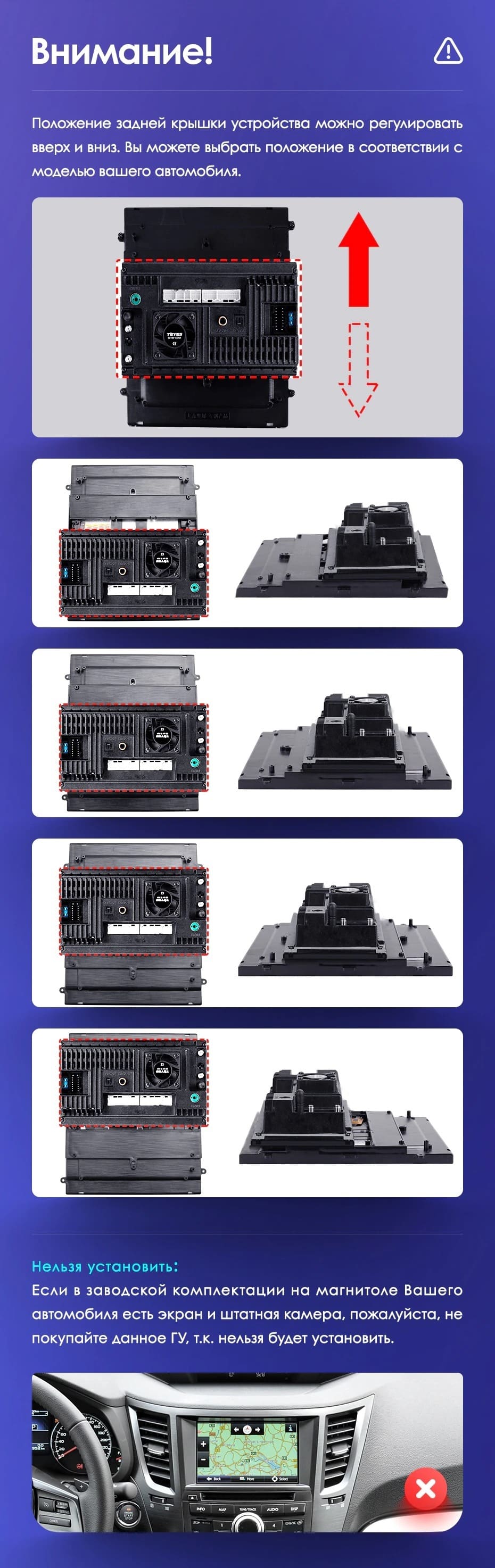 Вертикальная установка магнитолы закрывается специальной рамкой под определённый автомобиль. Утончённый, лаконичный дизайн Teyes TPRO 2 подойдёт под любую премиальную обшивку салона. Большой выбор цветовых решений интерфейса позволяет создавать индивидуальное оформление, чтобы мерцания и анимации на мониторе не отвлекали от езды. Teyes TPRO 2 - это симбиоз передовых технологий, созданный для вашего комфорта и безопасности.