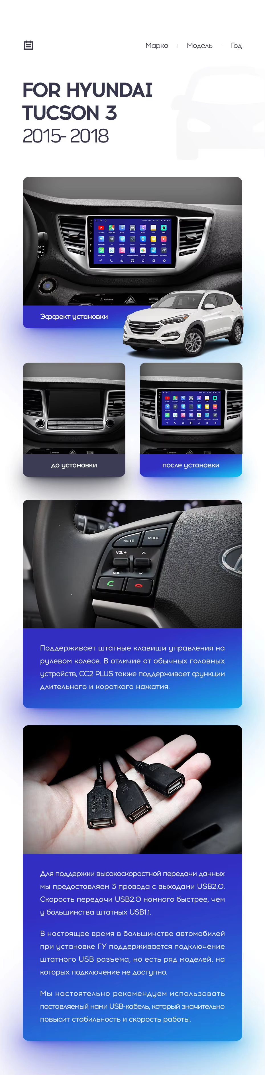 Штатная магнитола Teyes CC2 Plus 4/32 Hyundai Tucson 3 (2015-2018) Тип-A - купить всего за 33 800 руб. в интернет-магазине в Новороссийске Teyes.com.ru. ✓ Самый лучший выбор мультимедиа ✓ Лучшая замена штатному ГУ ✓ Тел. +7 (800) 775-31-74