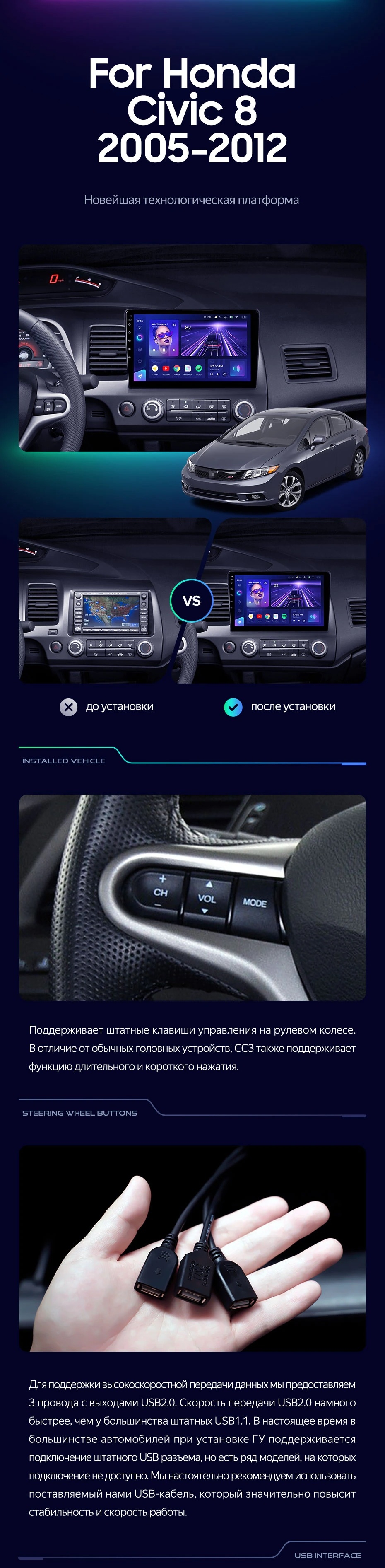 Штатная магнитола Teyes CC3 2K 4/32 Honda Civic 8 FK FN FD (2005-2012) - купить всего за 38 450 руб. в интернет-магазине в Новороссийске Teyes.com.ru. ✓ Самый лучший выбор мультимедиа ✓ Лучшая замена штатному ГУ ✓ Тел. +7 (800) 775-31-74
