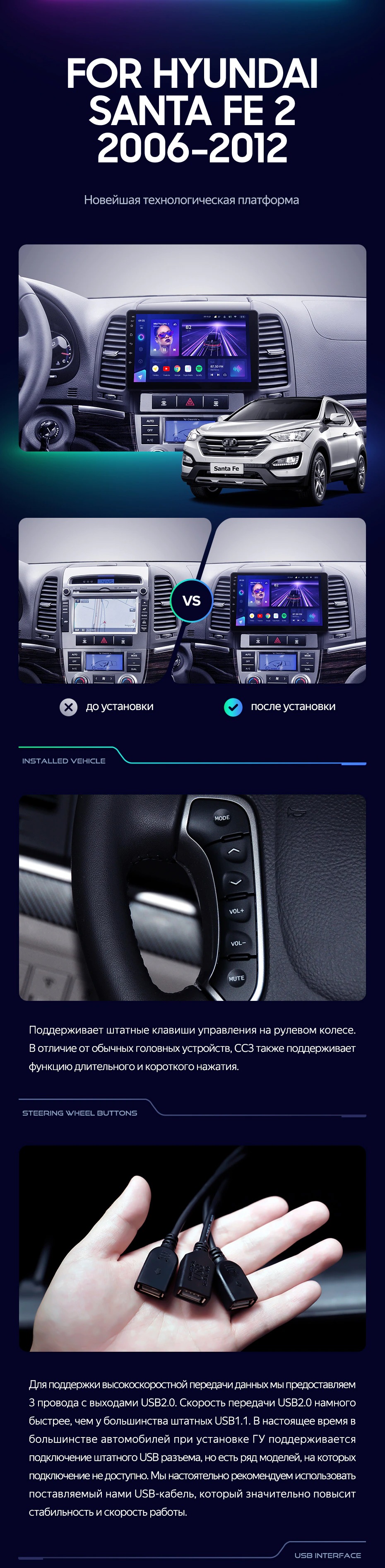 Штатная магнитола Teyes CC3 2K 360 6/128 Hyundai Santa Fe 2 (2006-2012) (13") - купить всего за 50 960 руб. в интернет-магазине в Новороссийске Teyes.com.ru. ✓ Самый лучший выбор мультимедиа ✓ Лучшая замена штатному ГУ ✓ Тел. +7 (800) 775-31-74