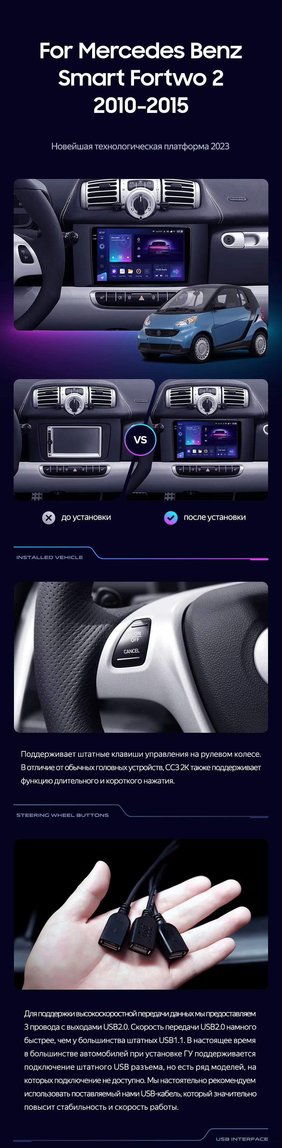 Штатная магнитола Teyes CC3 2K 4/32 Mercedes-Benz Smart Fortwo 2 (2010-2015) F1 - купить всего за 39 200 руб. в интернет-магазине в Новороссийске Teyes.com.ru. ✓ Самый лучший выбор мультимедиа ✓ Лучшая замена штатному ГУ ✓ Тел. +7 (800) 775-31-74