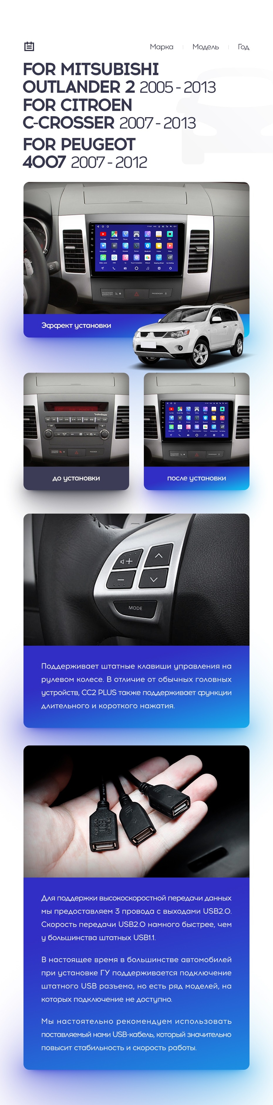 Штатная магнитола Teyes CC3 2K 4/32 Mitsubishi Outlander 2 (2005-2011) Тип-A (13") - купить всего за 40 840 руб. в интернет-магазине в Новороссийске Teyes.com.ru. ✓ Самый лучший выбор мультимедиа ✓ Лучшая замена штатному ГУ ✓ Тел. +7 (800) 775-31-74