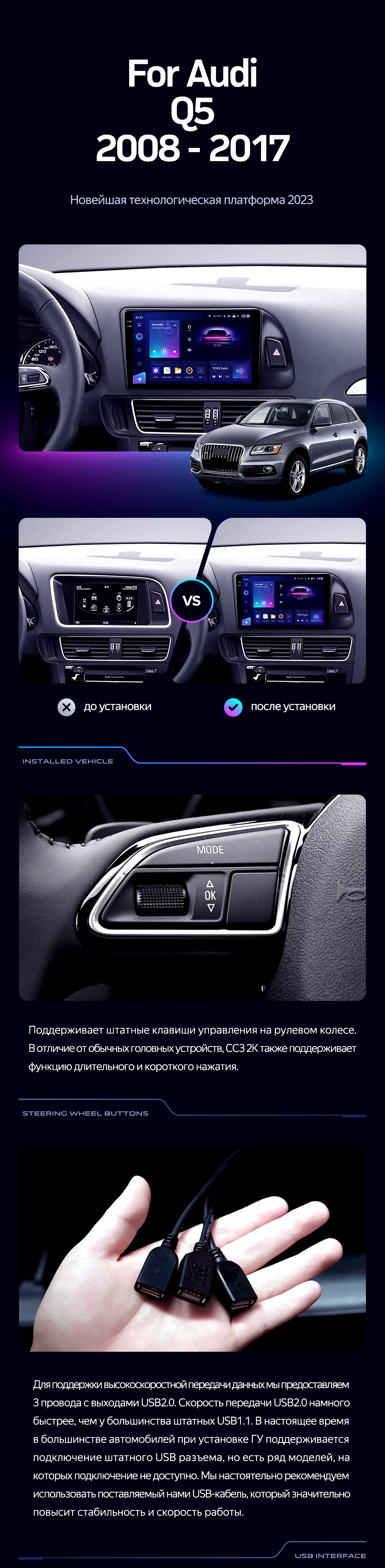 Штатная магнитола Teyes CC3 2K 4/64 Audi Q5 8R (2008-2017) Тип-A - купить всего за 50 740 руб. в интернет-магазине в Новороссийске Teyes.com.ru. ✓ Самый лучший выбор мультимедиа ✓ Лучшая замена штатному ГУ ✓ Тел. +7 (800) 775-31-74