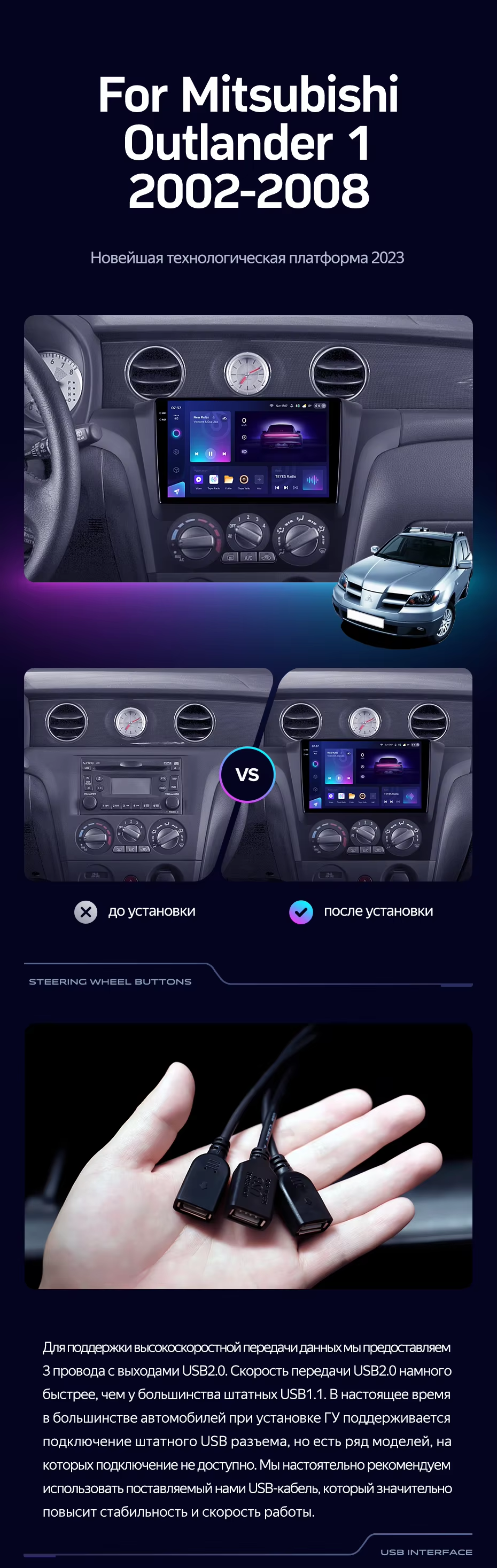Штатная магнитола Teyes CC3 2K 6/128 Mitsubishi Outlander 1 (2002-2008) F1 - купить всего за 45 370 руб. в интернет-магазине в Новороссийске Teyes.com.ru. ✓ Самый лучший выбор мультимедиа ✓ Лучшая замена штатному ГУ ✓ Тел. +7 (800) 775-31-74