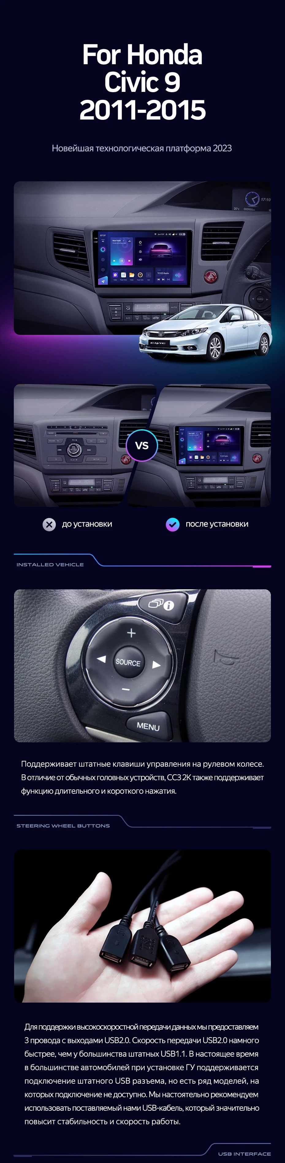 Штатная магнитола Teyes CC3 4/32 Honda Civic 9 FB FK FD (2011-2015) Правый руль - купить всего за 34 230 руб. в интернет-магазине в Новороссийске Teyes.com.ru. ✓ Самый лучший выбор мультимедиа ✓ Лучшая замена штатному ГУ ✓ Тел. +7 (800) 775-31-74