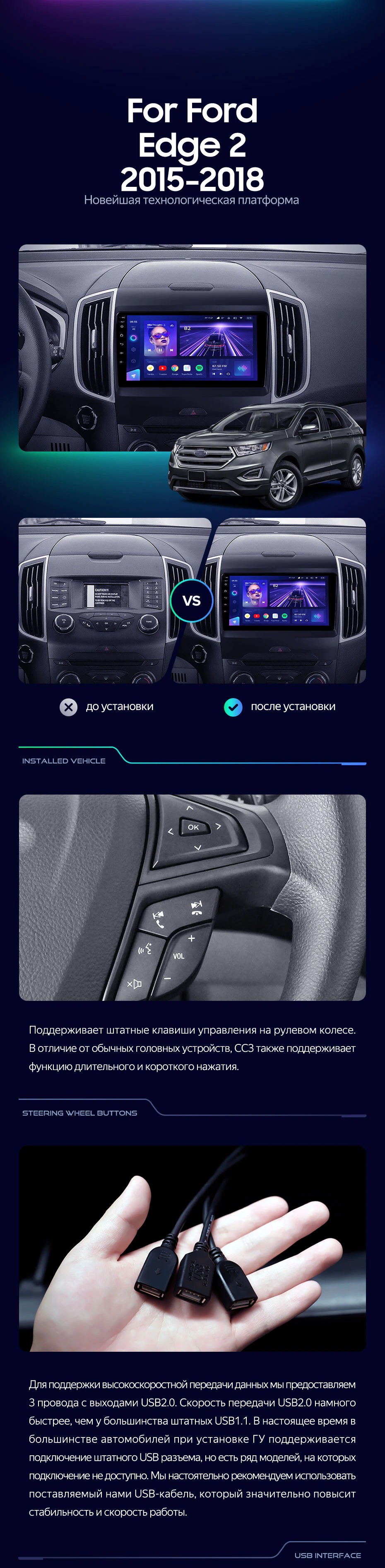 Штатная магнитола Teyes CC3 4/32 Ford Edge 2 (2015-2018) F1 - купить всего за 32 830 руб. в интернет-магазине в Новороссийске Teyes.com.ru. ✓ Самый лучший выбор мультимедиа ✓ Лучшая замена штатному ГУ ✓ Тел. +7 (800) 775-31-74