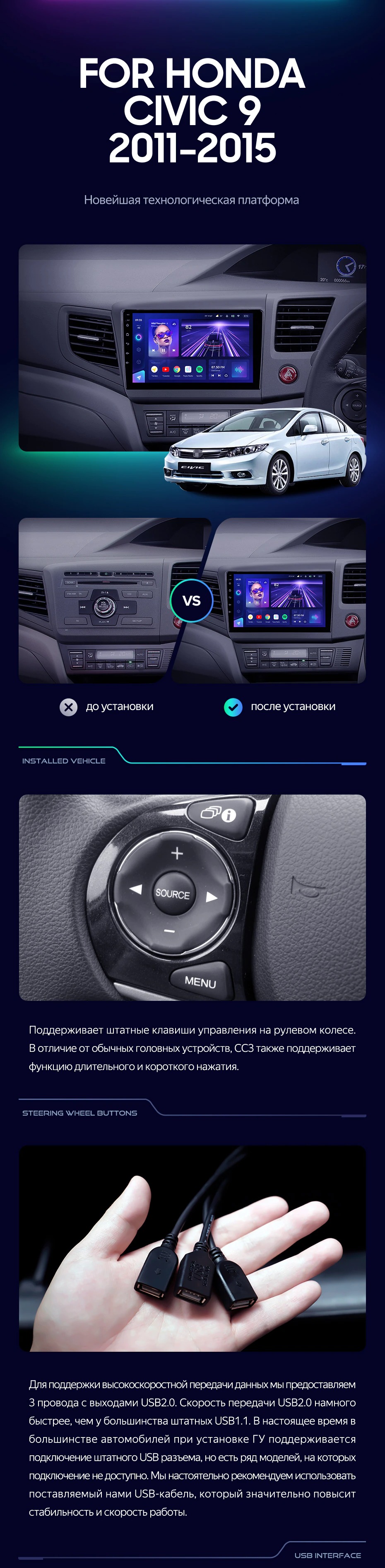 Штатная магнитола Teyes CC3 4/32 Honda Civic 9 FB FK FD (2011-2015) - купить всего за 33 330 руб. в интернет-магазине в Новороссийске Teyes.com.ru. ✓ Самый лучший выбор мультимедиа ✓ Лучшая замена штатному ГУ ✓ Тел. +7 (800) 775-31-74