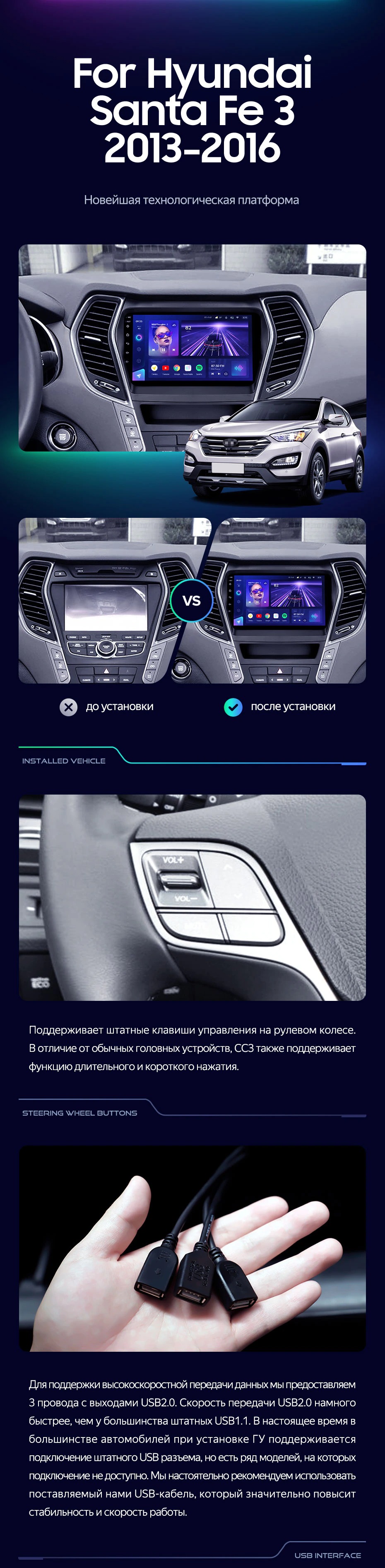 Штатная магнитола Teyes CC3 4/32 Hyundai Santa Fe 3 (2013-2016) Тип-B - купить всего за 33 530 руб. в интернет-магазине в Новороссийске Teyes.com.ru. ✓ Самый лучший выбор мультимедиа ✓ Лучшая замена штатному ГУ ✓ Тел. +7 (800) 775-31-74