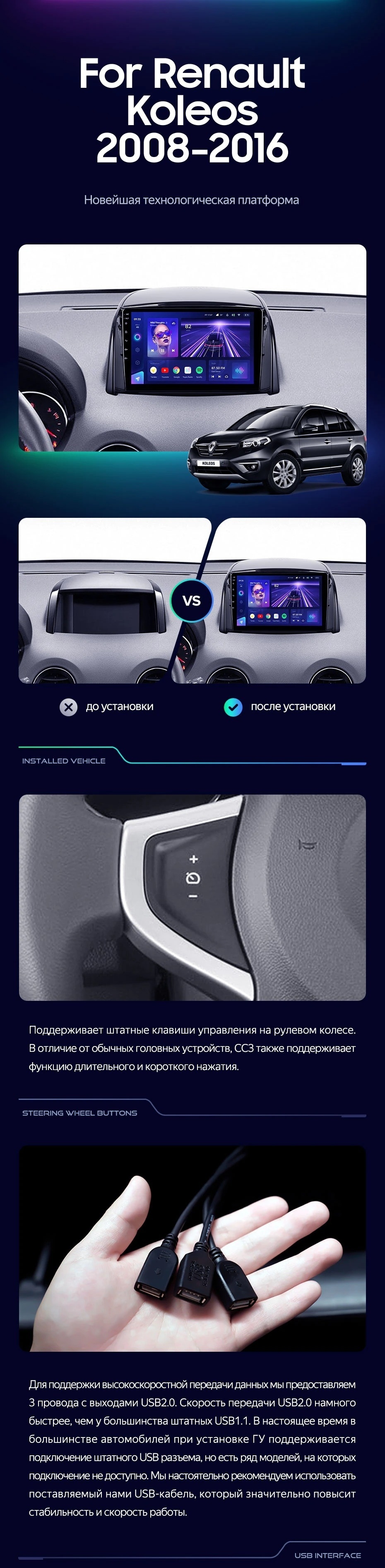 Штатная магнитола Teyes CC3 4/32 Renault Koleos (2008-2016) Тип-B - купить всего за 34 070 руб. в интернет-магазине в Новороссийске Teyes.com.ru. ✓ Самый лучший выбор мультимедиа ✓ Лучшая замена штатному ГУ ✓ Тел. +7 (800) 775-31-74
