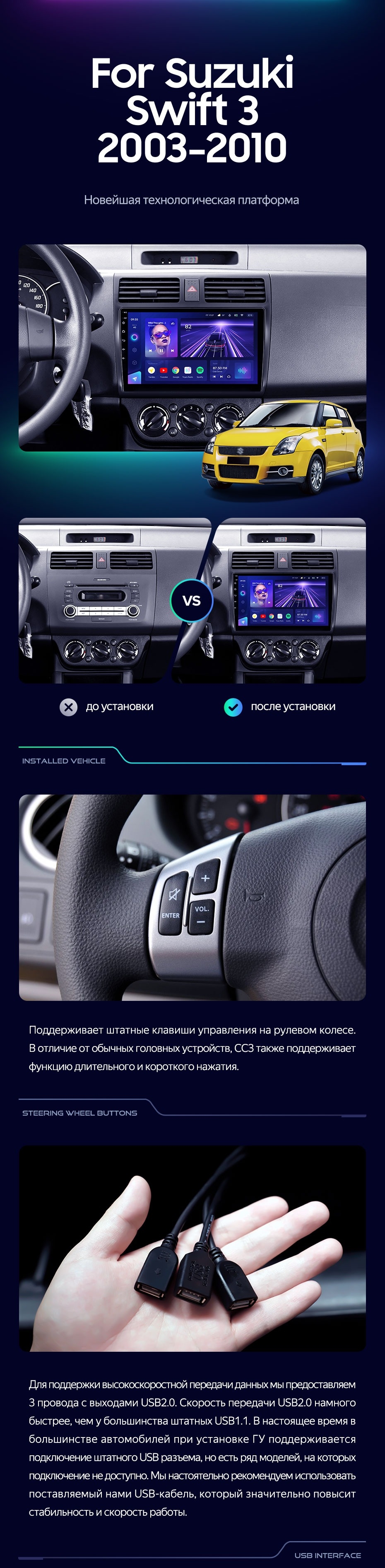 Штатная магнитола Teyes CC3 4/32 Suzuki Swift 3 (2003-2010) - купить всего за 32 300 руб. в интернет-магазине в Новороссийске Teyes.com.ru. ✓ Самый лучший выбор мультимедиа ✓ Лучшая замена штатному ГУ ✓ Тел. +7 (800) 775-31-74