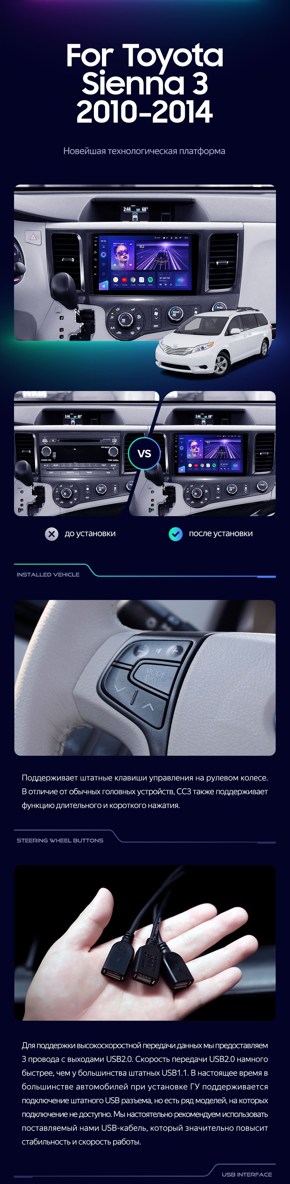 Штатная магнитола Teyes CC3 4/32 Toyota Sienna 3 XL30 (2010-2014) - купить всего за 35 730 руб. в интернет-магазине в Новороссийске Teyes.com.ru. ✓ Самый лучший выбор мультимедиа ✓ Лучшая замена штатному ГУ ✓ Тел. +7 (800) 775-31-74