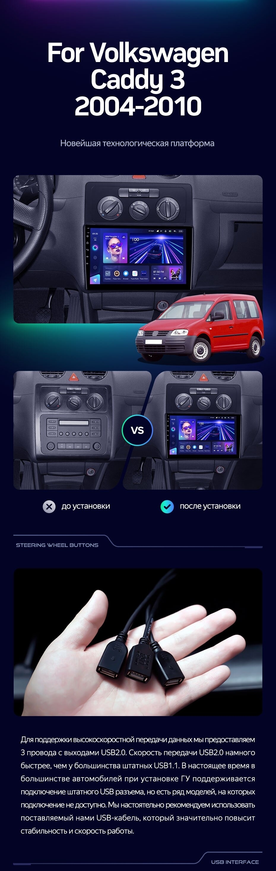 Штатная магнитола Teyes CC3 4/32 Volkswagen Caddy 2K (2004-2010) - купить всего за 34 300 руб. в интернет-магазине в Новороссийске Teyes.com.ru. ✓ Самый лучший выбор мультимедиа ✓ Лучшая замена штатному ГУ ✓ Тел. +7 (800) 775-31-74