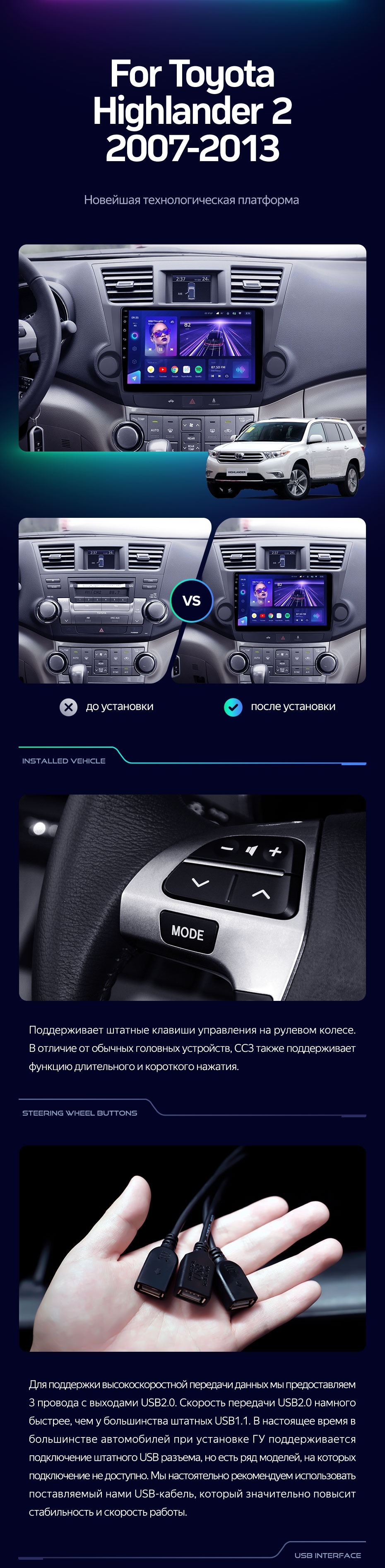 Штатная магнитола Teyes CC3 4/32 Toyota Highlander 2 XU40 (2007-2013) F2 10" - купить всего за 32 670 руб. в интернет-магазине в Новороссийске Teyes.com.ru. ✓ Самый лучший выбор мультимедиа ✓ Лучшая замена штатному ГУ ✓ Тел. +7 (800) 775-31-74
