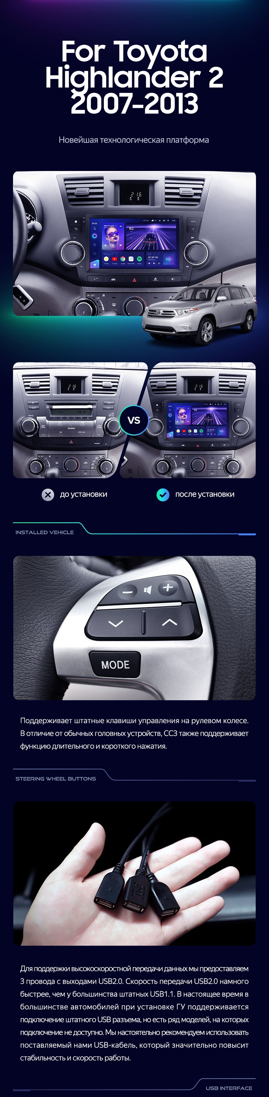 Штатная магнитола Teyes CC3 4/64 Toyota Highlander 2 XU40 (2007-2013) F3 9" - купить всего за 43 200 руб. в интернет-магазине в Новороссийске Teyes.com.ru. ✓ Самый лучший выбор мультимедиа ✓ Лучшая замена штатному ГУ ✓ Тел. +7 (800) 775-31-74