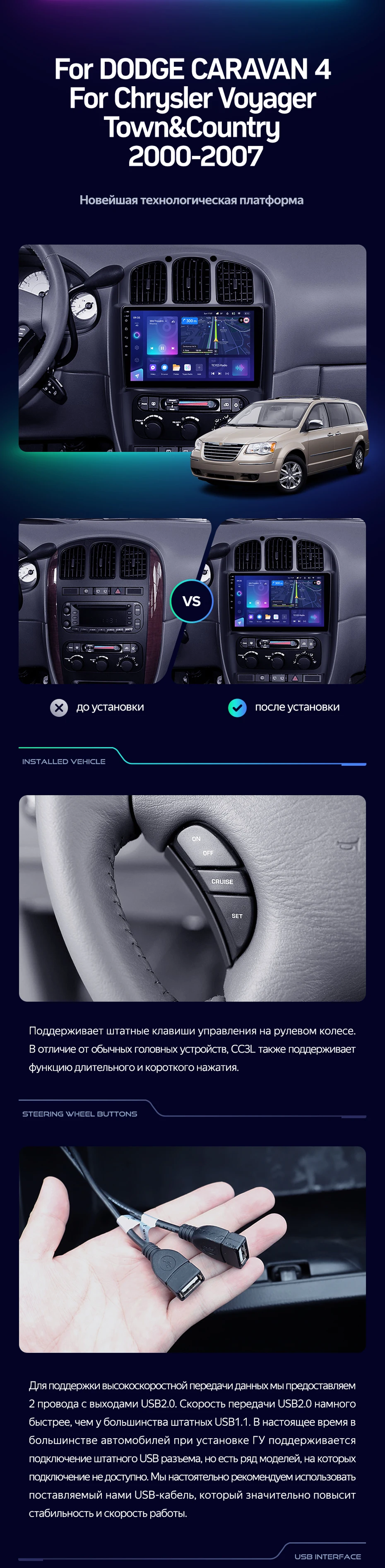 Штатная магнитола Teyes CC3L 4/32 Chrysler Town & Country 4 RS (2000-2007) Тип-A - купить всего за 31 300 руб. в интернет-магазине в Новороссийске Teyes.com.ru. ✓ Самый лучший выбор мультимедиа ✓ Лучшая замена штатному ГУ ✓ Тел. +7 (800) 775-31-74