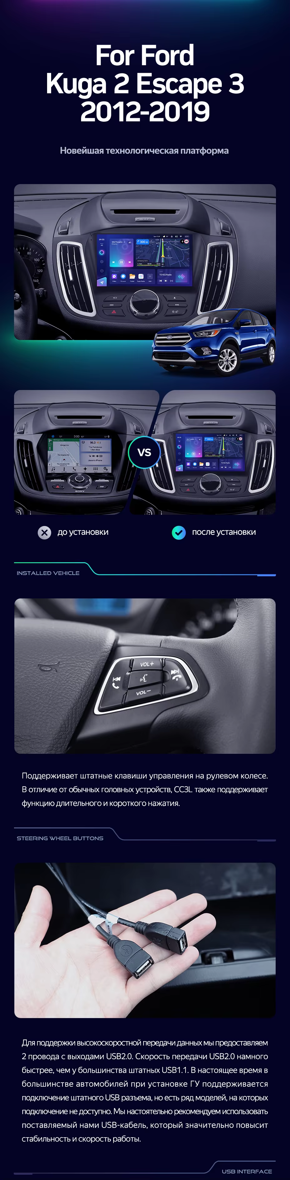 Штатная магнитола Teyes CC3L 4/32 Ford Kuga 2 (2012-2019) Тип-B - купить всего за 32 000 руб. в интернет-магазине в Новороссийске Teyes.com.ru. ✓ Самый лучший выбор мультимедиа ✓ Лучшая замена штатному ГУ ✓ Тел. +7 (800) 775-31-74