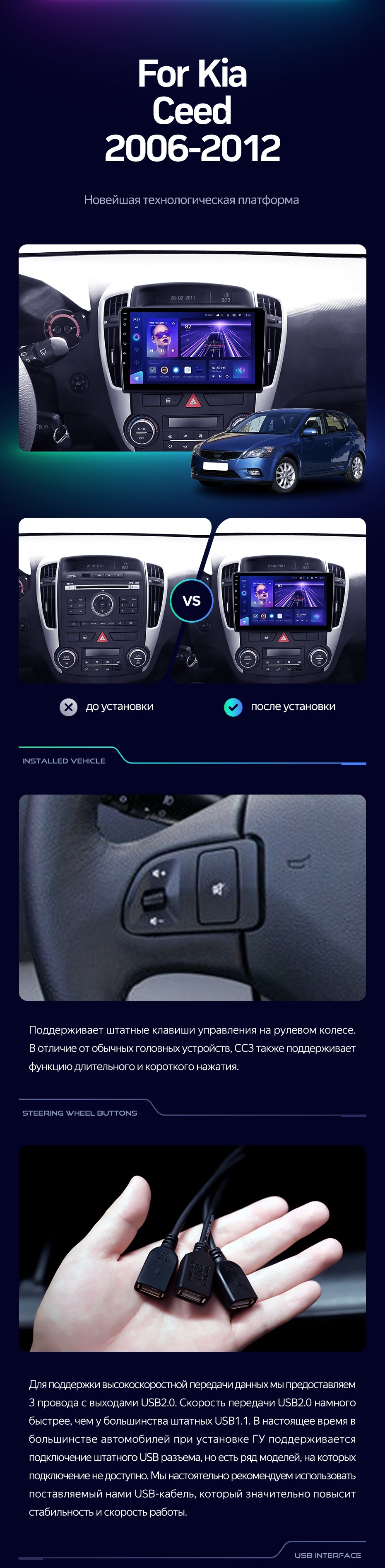 Штатная магнитола Teyes CC3L 4/32 Kia Ceed (2006-2009) - купить всего за 28 500 руб. в интернет-магазине в Новороссийске Teyes.com.ru. ✓ Самый лучший выбор мультимедиа ✓ Лучшая замена штатному ГУ ✓ Тел. +7 (800) 775-31-74