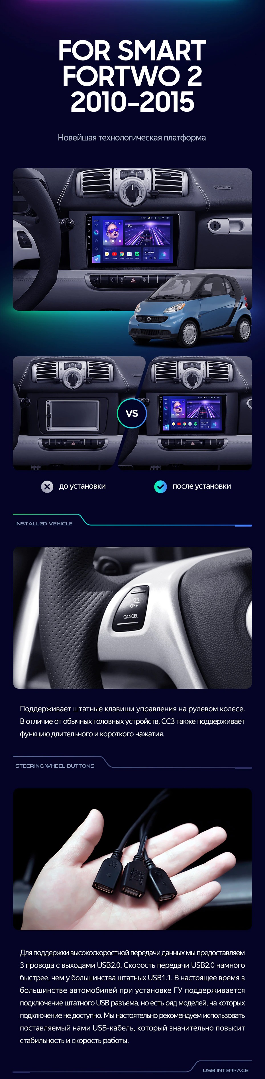 Штатная магнитола Teyes CC3L 4/32 Mercedes-Benz Smart Fortwo 2 (2010-2015) F1 - купить всего за 28 400 руб. в интернет-магазине в Новороссийске Teyes.com.ru. ✓ Самый лучший выбор мультимедиа ✓ Лучшая замена штатному ГУ ✓ Тел. +7 (800) 775-31-74