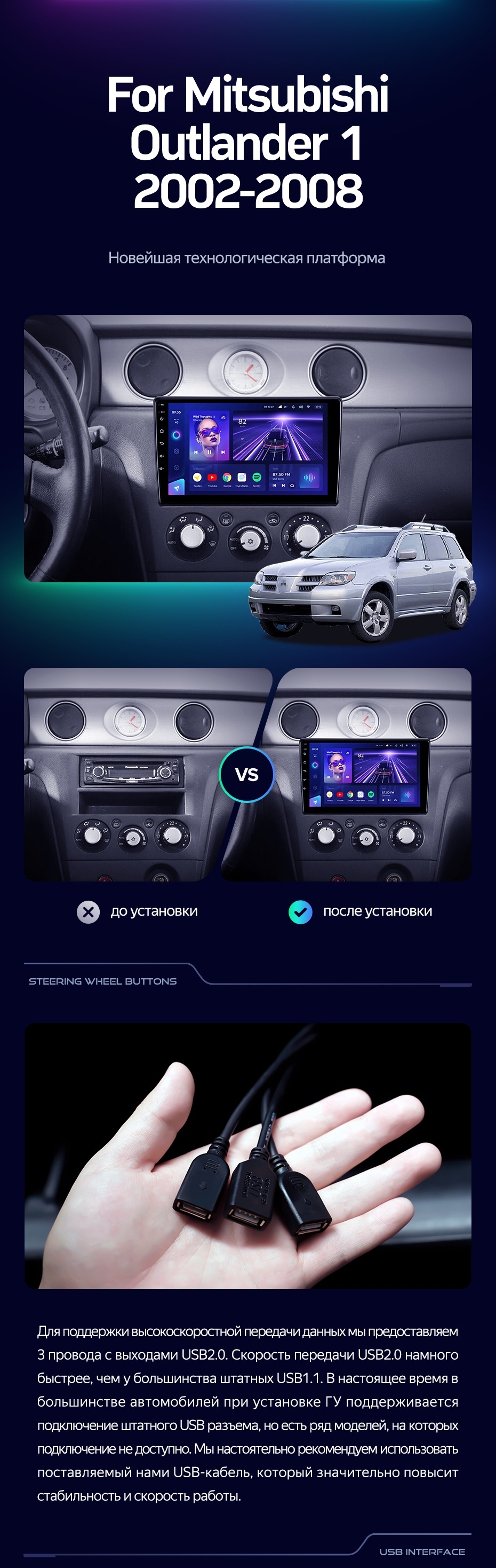 Штатная магнитола Teyes CC3L 4/32 Mitsubishi Outlander 1 (2002-2008) F2 - купить всего за 28 200 руб. в интернет-магазине в Новороссийске Teyes.com.ru. ✓ Самый лучший выбор мультимедиа ✓ Лучшая замена штатному ГУ ✓ Тел. +7 (800) 775-31-74