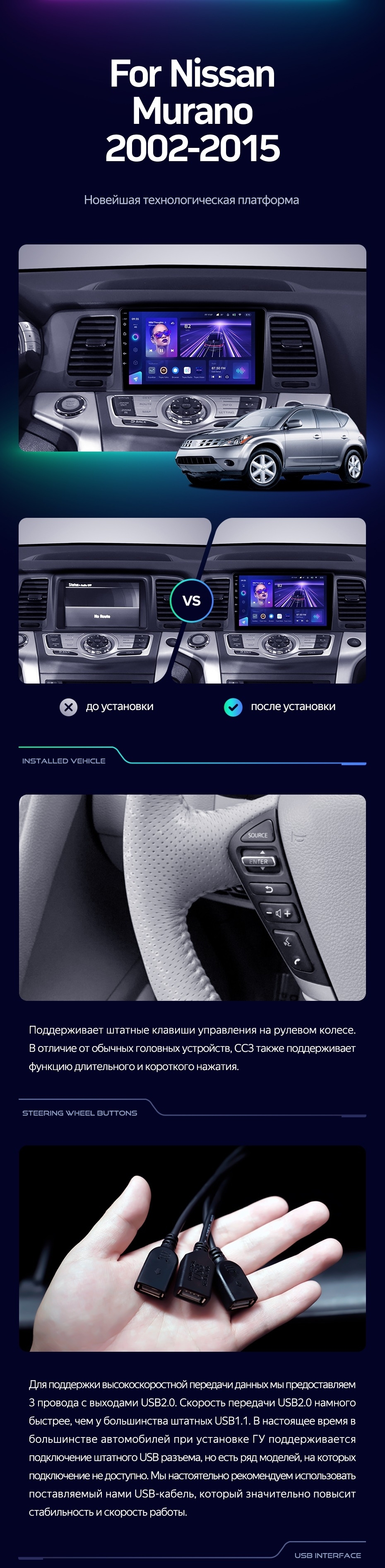 Штатная магнитола Teyes CC3L 4/32 Nissan Murano Z50 (2002-2015) - купить всего за 28 370 руб. в интернет-магазине в Новороссийске Teyes.com.ru. ✓ Самый лучший выбор мультимедиа ✓ Лучшая замена штатному ГУ ✓ Тел. +7 (800) 775-31-74