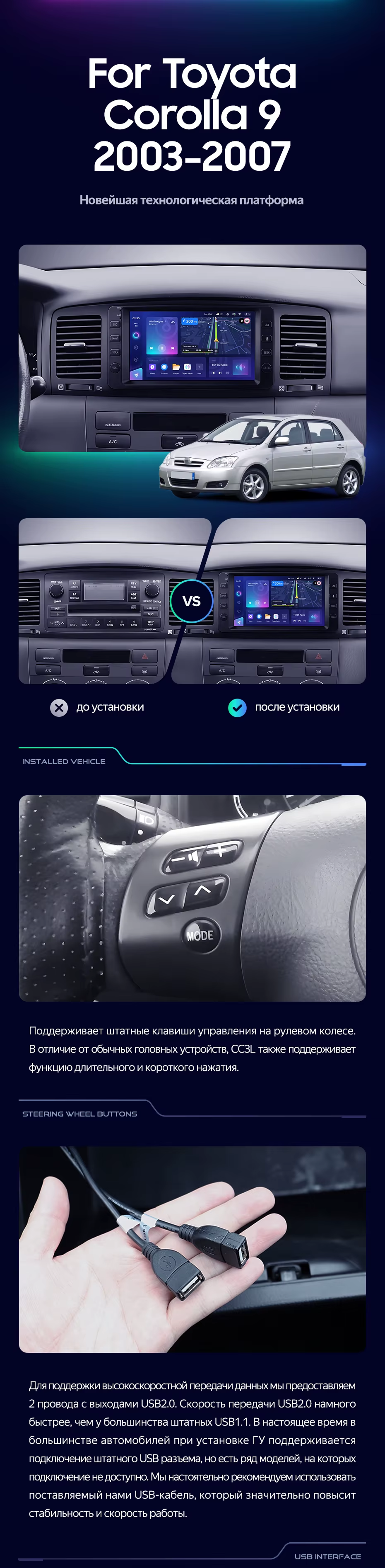 Штатная магнитола Teyes CC3L 4/32 Toyota Corolla 9 E120 E130 (2003-2007) 7" - купить всего за 28 300 руб. в интернет-магазине в Новороссийске Teyes.com.ru. ✓ Самый лучший выбор мультимедиа ✓ Лучшая замена штатному ГУ ✓ Тел. +7 (800) 775-31-74
