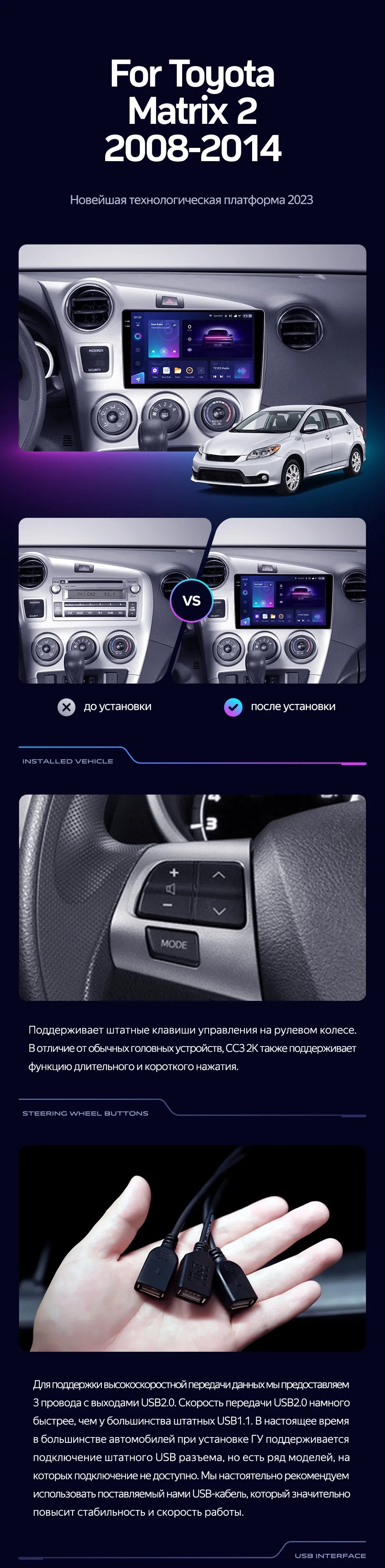 Штатная магнитола Teyes CC3L 4/32 Toyota Matrix 2 E140 (2008-2014) - купить всего за 30 200 руб. в интернет-магазине в Новороссийске Teyes.com.ru. ✓ Самый лучший выбор мультимедиа ✓ Лучшая замена штатному ГУ ✓ Тел. +7 (800) 775-31-74