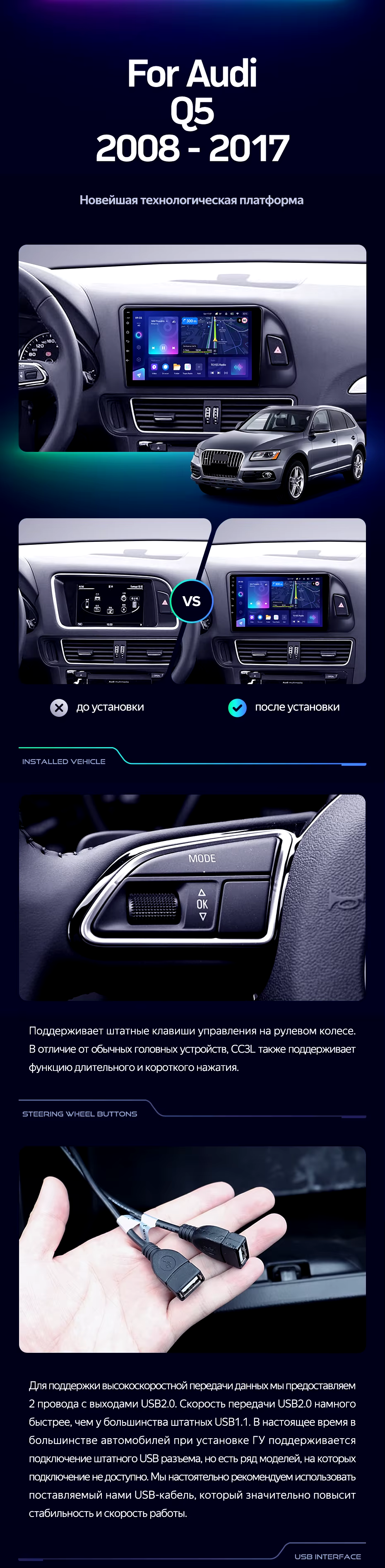 Штатная магнитола Teyes CC3L 4/64 Audi Q5 8R (2008-2017) Тип-A - купить всего за 33 750 руб. в интернет-магазине в Новороссийске Teyes.com.ru. ✓ Самый лучший выбор мультимедиа ✓ Лучшая замена штатному ГУ ✓ Тел. +7 (800) 775-31-74