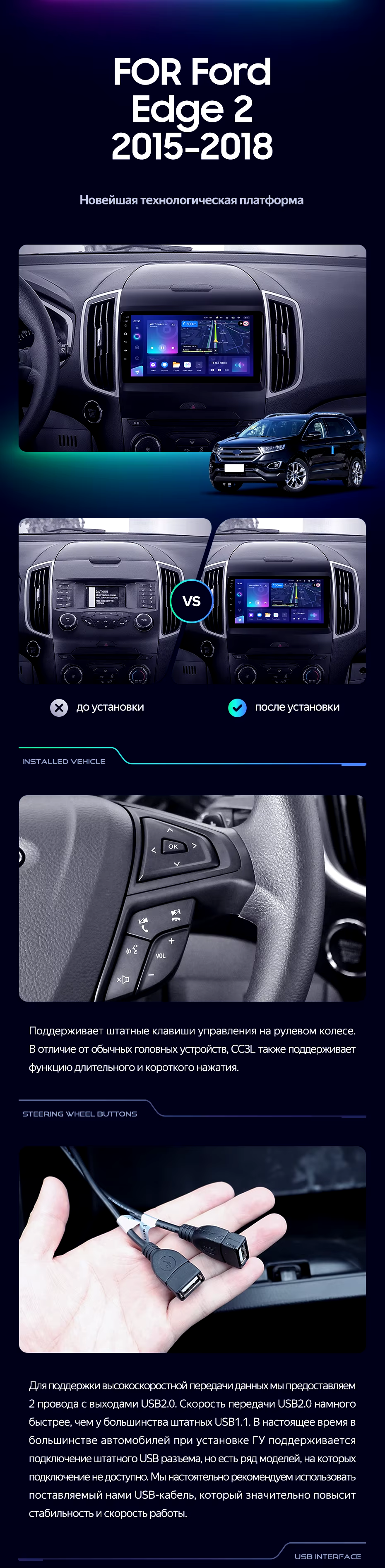 Штатная магнитола Teyes CC3L 4/64 Ford Edge 2 (2015-2018) F1 - купить всего за 31 000 руб. в интернет-магазине в Новороссийске Teyes.com.ru. ✓ Самый лучший выбор мультимедиа ✓ Лучшая замена штатному ГУ ✓ Тел. +7 (800) 775-31-74