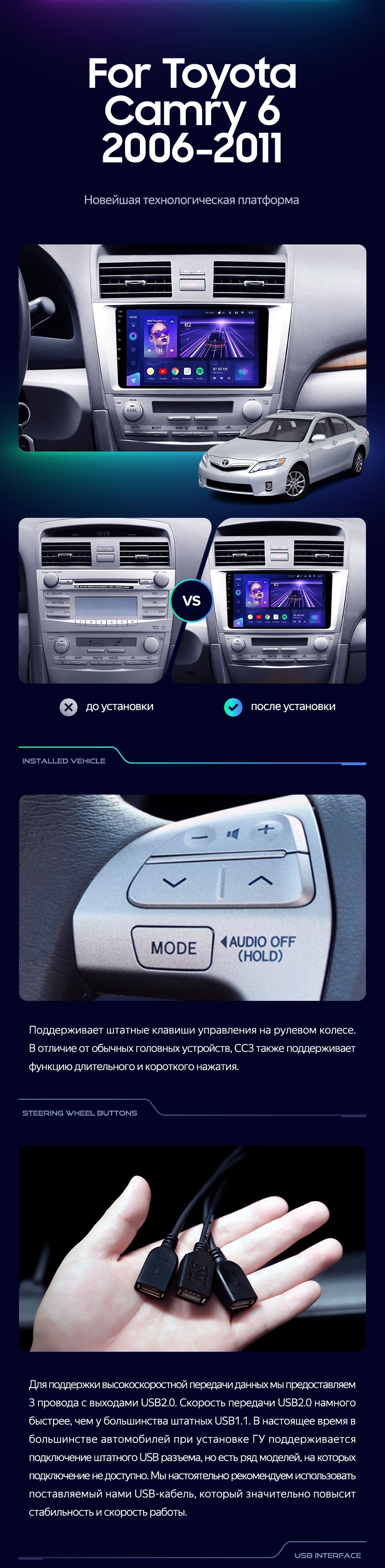 Штатная магнитола Teyes CC3L 4/64 Toyota Camry 6 XV 40 (2006-2011) F1 - купить всего за 30 020 руб. в интернет-магазине в Новороссийске Teyes.com.ru. ✓ Самый лучший выбор мультимедиа ✓ Лучшая замена штатному ГУ ✓ Тел. +7 (800) 775-31-74