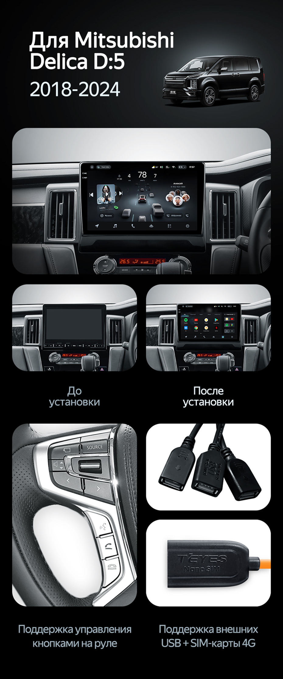 Штатная магнитола Teyes CC3L WiFi 2/32 Mitsubishi Delica D:5 (2018-2024) - купить всего за 17 200 руб. в интернет-магазине в Новороссийске Teyes.com.ru. ✓ Самый лучший выбор мультимедиа ✓ Лучшая замена штатному ГУ ✓ Тел. +7 (800) 775-31-74