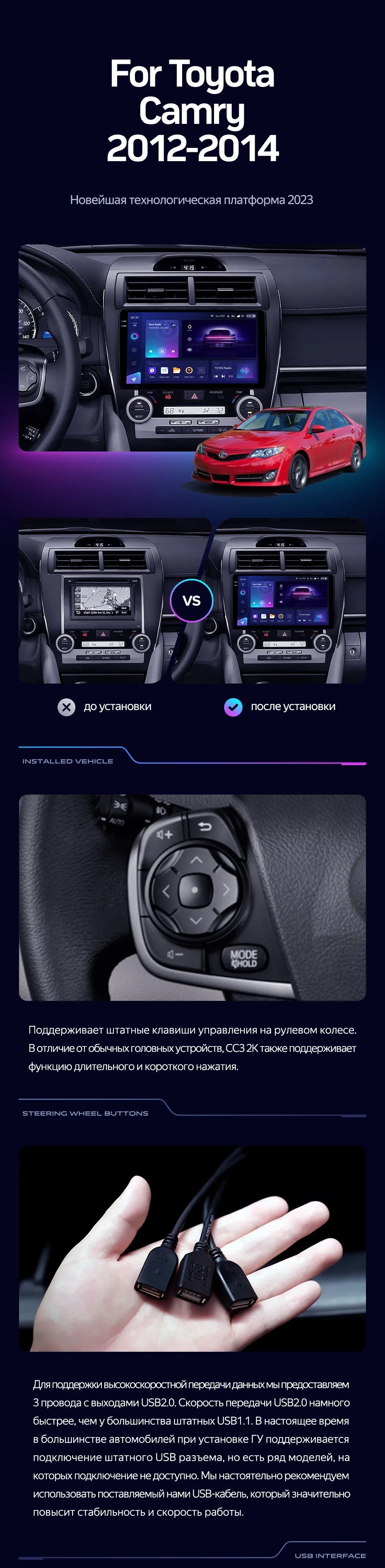 Штатная магнитола Teyes CC3L WiFi 2/32 Toyota Camry 7 XV 50 55 (2012-2014) Америка - купить всего за 14 100 руб. в интернет-магазине в Новороссийске Teyes.com.ru. ✓ Самый лучший выбор мультимедиа ✓ Лучшая замена штатному ГУ ✓ Тел. +7 (800) 775-31-74