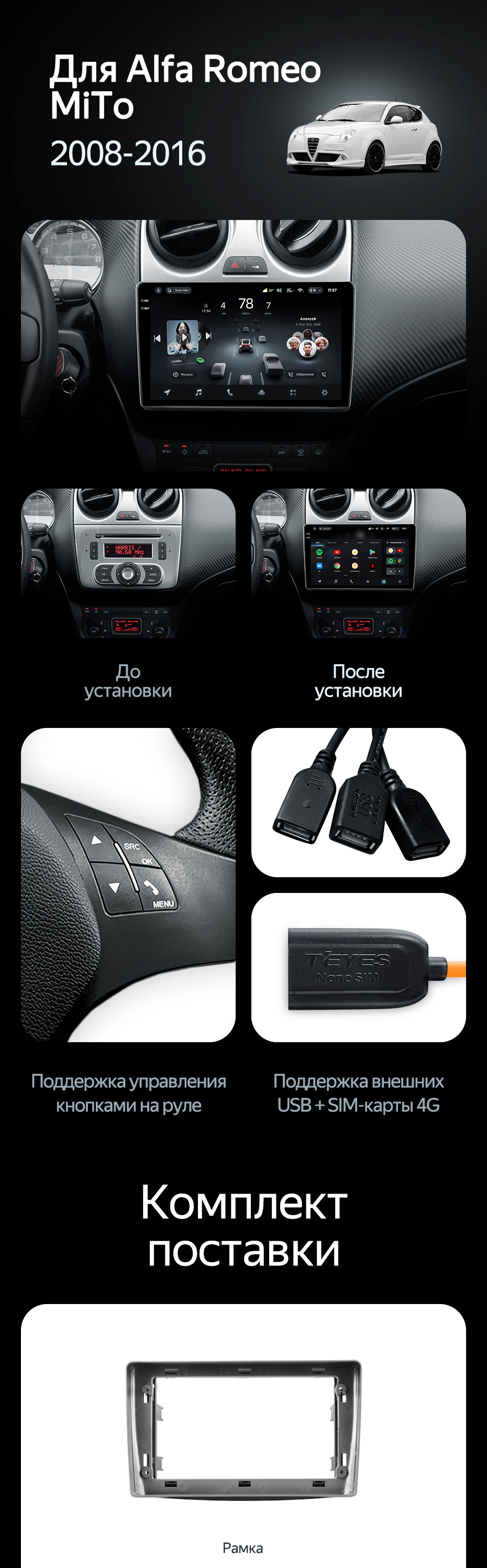 Штатная магнитола Teyes CC4 6/64 Alfa Romeo MiTo 955 (2008-2016) - купить всего за 50 500 руб. в интернет-магазине в Новороссийске Teyes.com.ru. ✓ Самый лучший выбор мультимедиа ✓ Лучшая замена штатному ГУ ✓ Тел. +7 (800) 775-31-74
