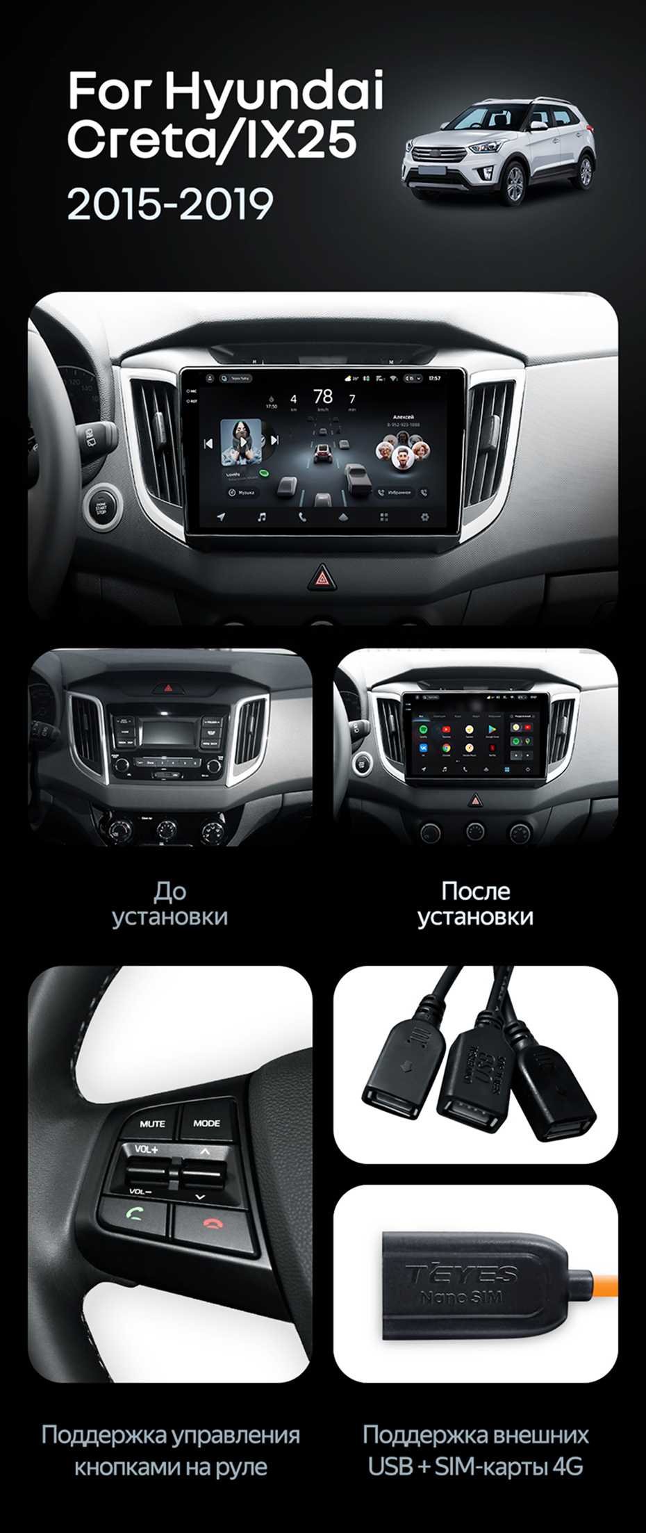 Штатная магнитола Teyes CC4 6/64 Hyundai Creta 1 (2015-2019) с кнопками - купить всего за 48 900 руб. в интернет-магазине в Новороссийске Teyes.com.ru. ✓ Самый лучший выбор мультимедиа ✓ Лучшая замена штатному ГУ ✓ Тел. +7 (800) 775-31-74
