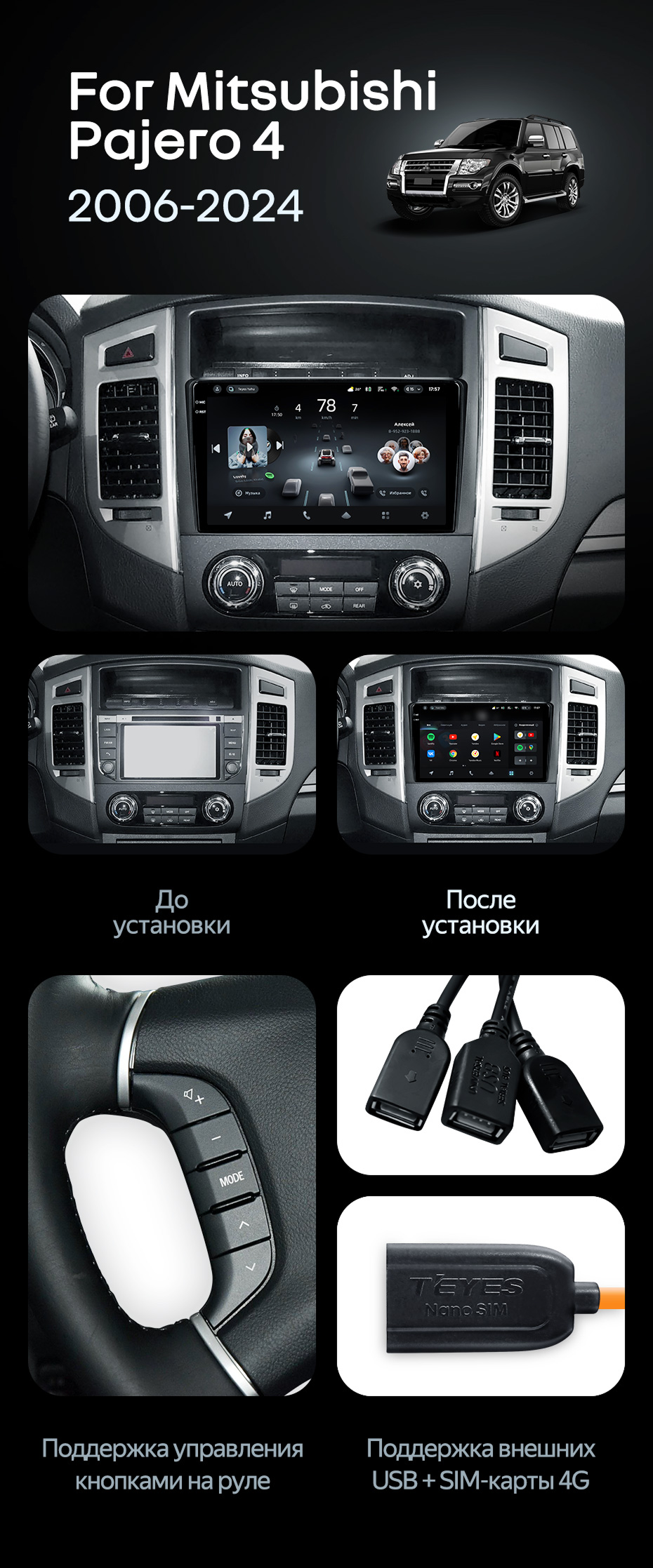 Штатная магнитола Teyes CC4 6/64 Mitsubishi Pajero 4 V80 V90 (2006-2024) - купить всего за 47 700 руб. в интернет-магазине в Новороссийске Teyes.com.ru. ✓ Самый лучший выбор мультимедиа ✓ Лучшая замена штатному ГУ ✓ Тел. +7 (800) 775-31-74