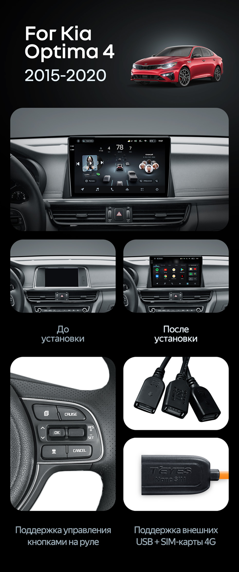 Штатная магнитола Teyes CC4 8/128 Kia Optima 4 JF (2015-2020) Тип-B - купить всего за 54 240 руб. в интернет-магазине в Новороссийске Teyes.com.ru. ✓ Самый лучший выбор мультимедиа ✓ Лучшая замена штатному ГУ ✓ Тел. +7 (800) 775-31-74