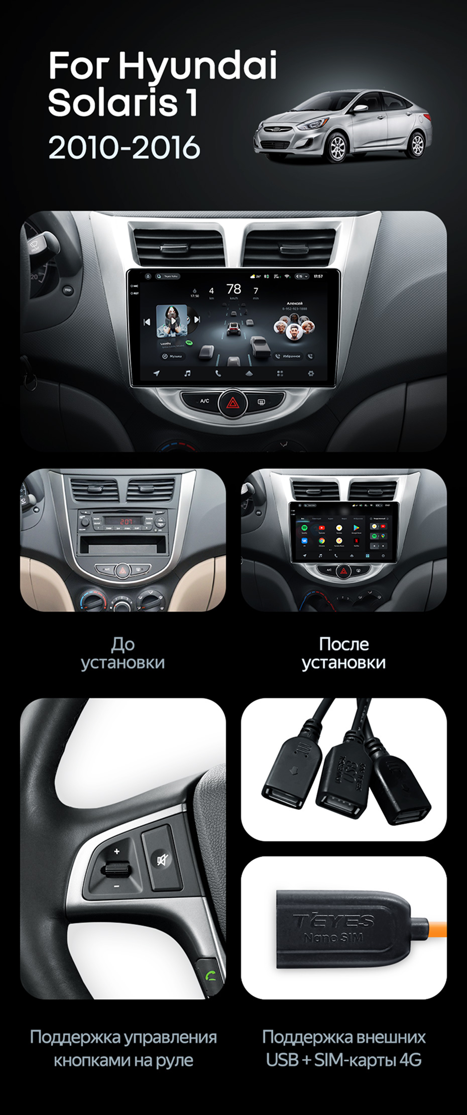 Штатная магнитола Teyes CC4 Pro 12/256 Hyundai Solaris 1 (2010-2016) F1 - купить всего за 67 680 руб. в интернет-магазине в Новороссийске Teyes.com.ru. ✓ Самый лучший выбор мультимедиа ✓ Лучшая замена штатному ГУ ✓ Тел. +7 (800) 775-31-74