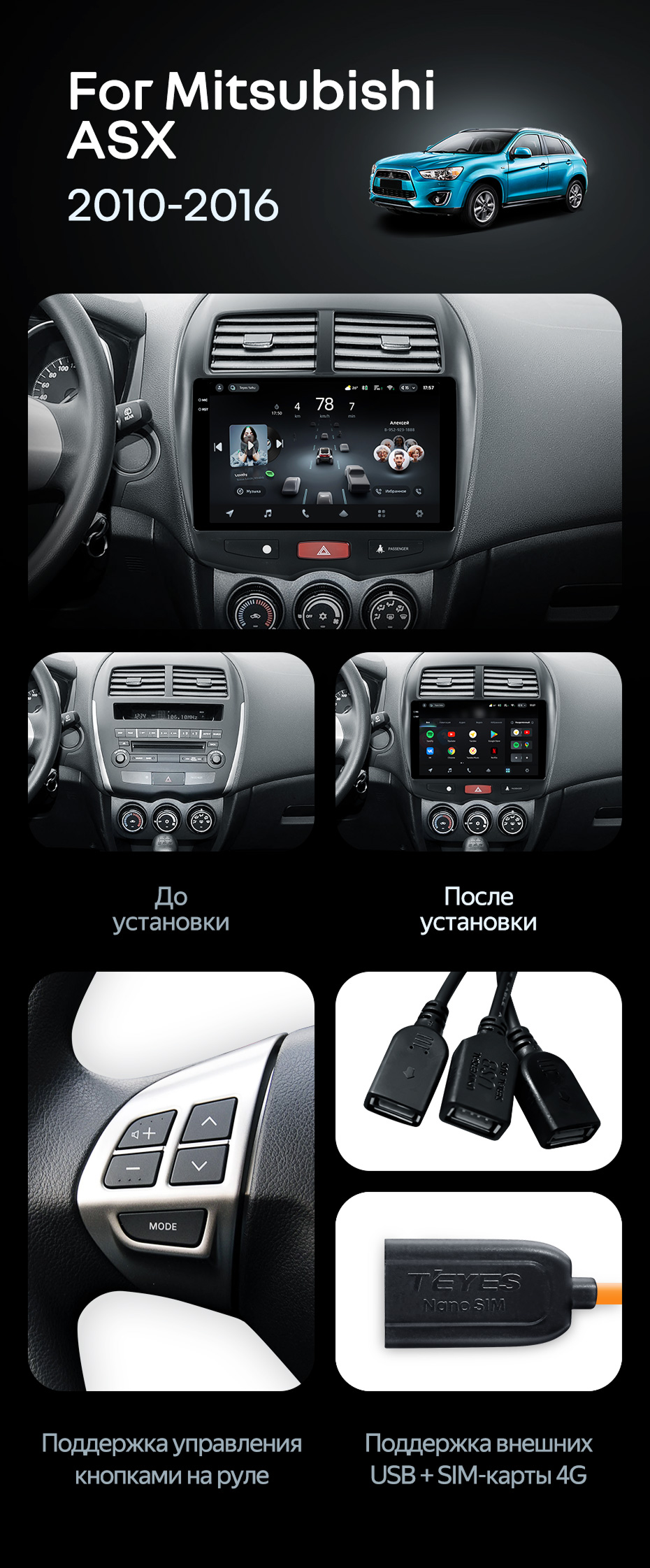 Штатная магнитола Teyes CC4 Pro 12/256 Mitsubishi ASX 1 (2010-2016) Тип-A - купить всего за 65 690 руб. в интернет-магазине в Новороссийске Teyes.com.ru. ✓ Самый лучший выбор мультимедиа ✓ Лучшая замена штатному ГУ ✓ Тел. +7 (800) 775-31-74
