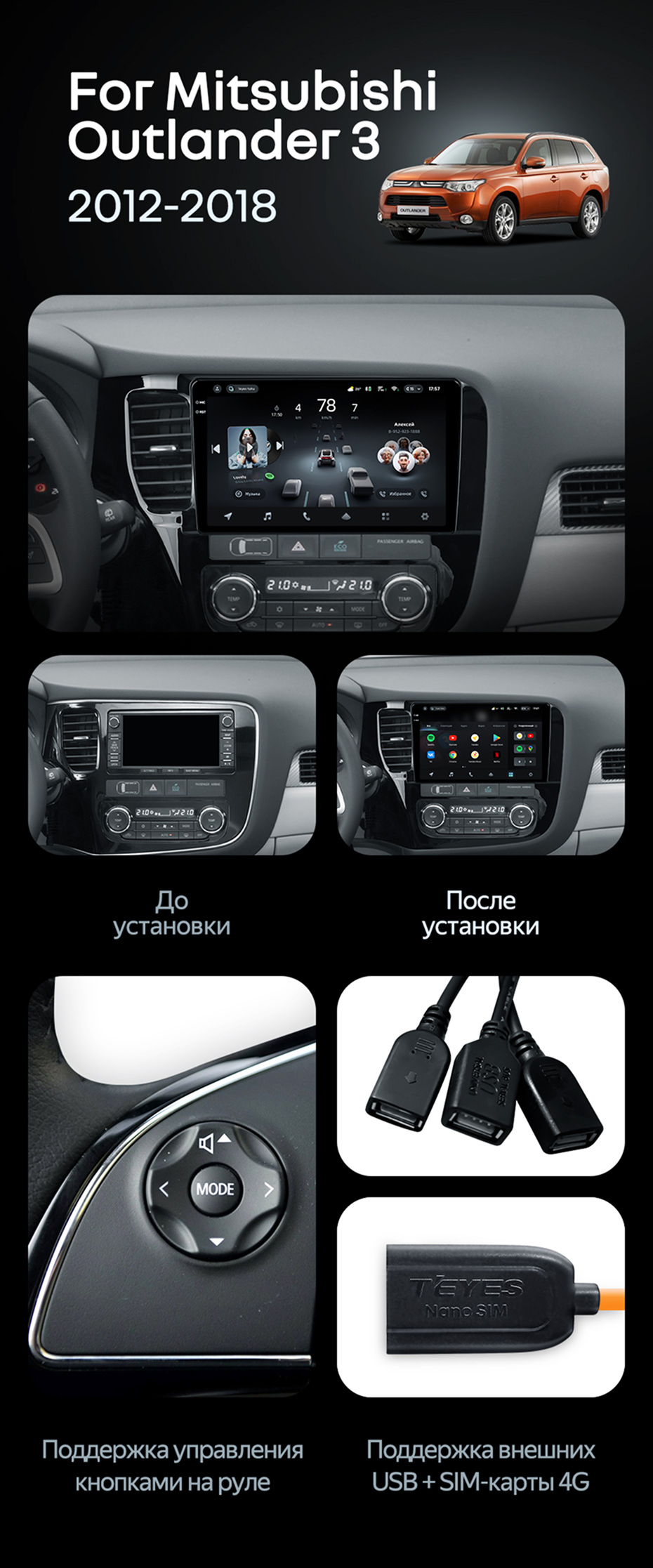 Штатная магнитола Teyes CC4 Pro 12/256 Mitsubishi Outlander 3 (2012-2018) Тип-B - купить всего за 66 250 руб. в интернет-магазине в Новороссийске Teyes.com.ru. ✓ Самый лучший выбор мультимедиа ✓ Лучшая замена штатному ГУ ✓ Тел. +7 (800) 775-31-74