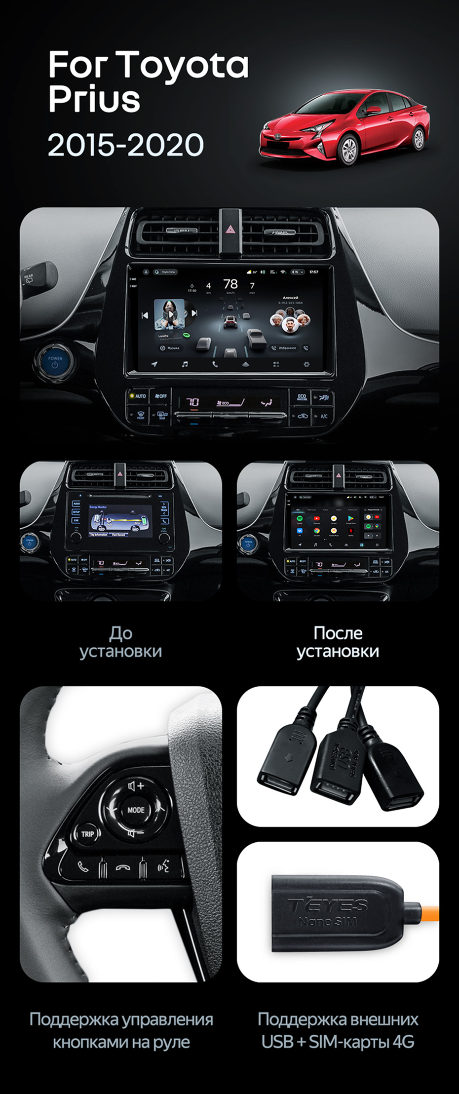 Штатная магнитола Teyes CC4 Pro 12/256 Toyota Prius XW50 (2015-2020) - купить всего за 69 070 руб. в интернет-магазине в Новороссийске Teyes.com.ru. ✓ Самый лучший выбор мультимедиа ✓ Лучшая замена штатному ГУ ✓ Тел. +7 (800) 775-31-74