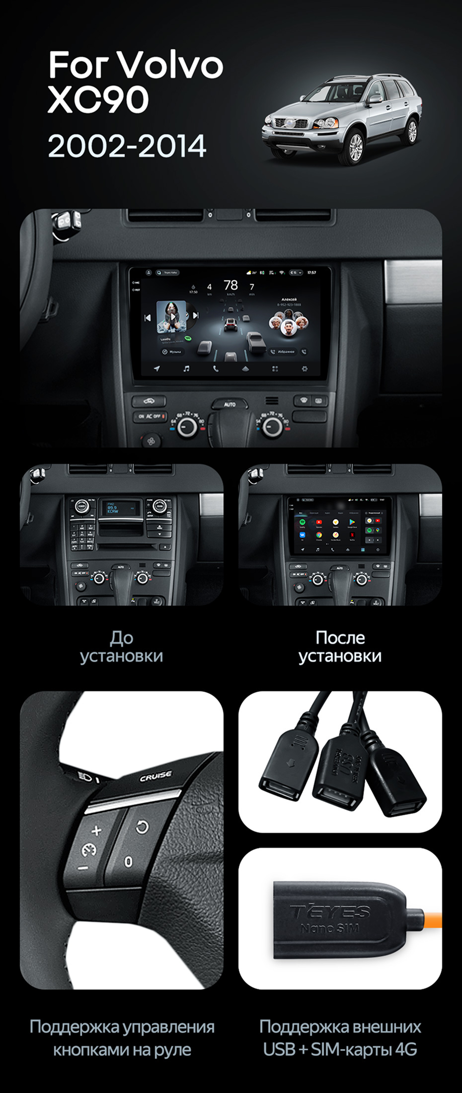 Штатная магнитола Teyes CC4 Pro 12/256 Volvo XC90 (2007-2014) F2 (комплект для установки нижней части) - купить всего за 72 940 руб. в интернет-магазине в Новороссийске Teyes.com.ru. ✓ Самый лучший выбор мультимедиа ✓ Лучшая замена штатному ГУ ✓ Тел. +7 (800) 775-31-74