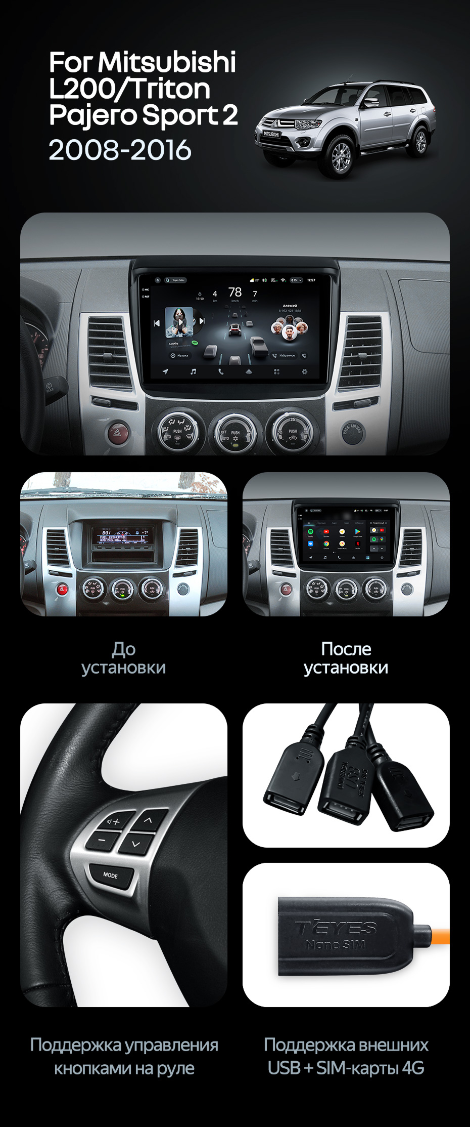 Штатная магнитола Teyes CC4 Pro 360 8/128 Mitsubishi L200 (2008-2016) - купить всего за 78 740 руб. в интернет-магазине в Новороссийске Teyes.com.ru. ✓ Самый лучший выбор мультимедиа ✓ Лучшая замена штатному ГУ ✓ Тел. +7 (800) 775-31-74