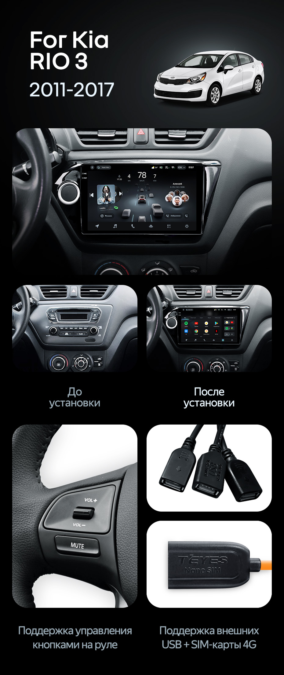 Штатная магнитола Teyes CC4 Pro 8/128 Kia Rio 3 (2011-2017) - купить всего за 58 180 руб. в интернет-магазине в Новороссийске Teyes.com.ru. ✓ Самый лучший выбор мультимедиа ✓ Лучшая замена штатному ГУ ✓ Тел. +7 (800) 775-31-74