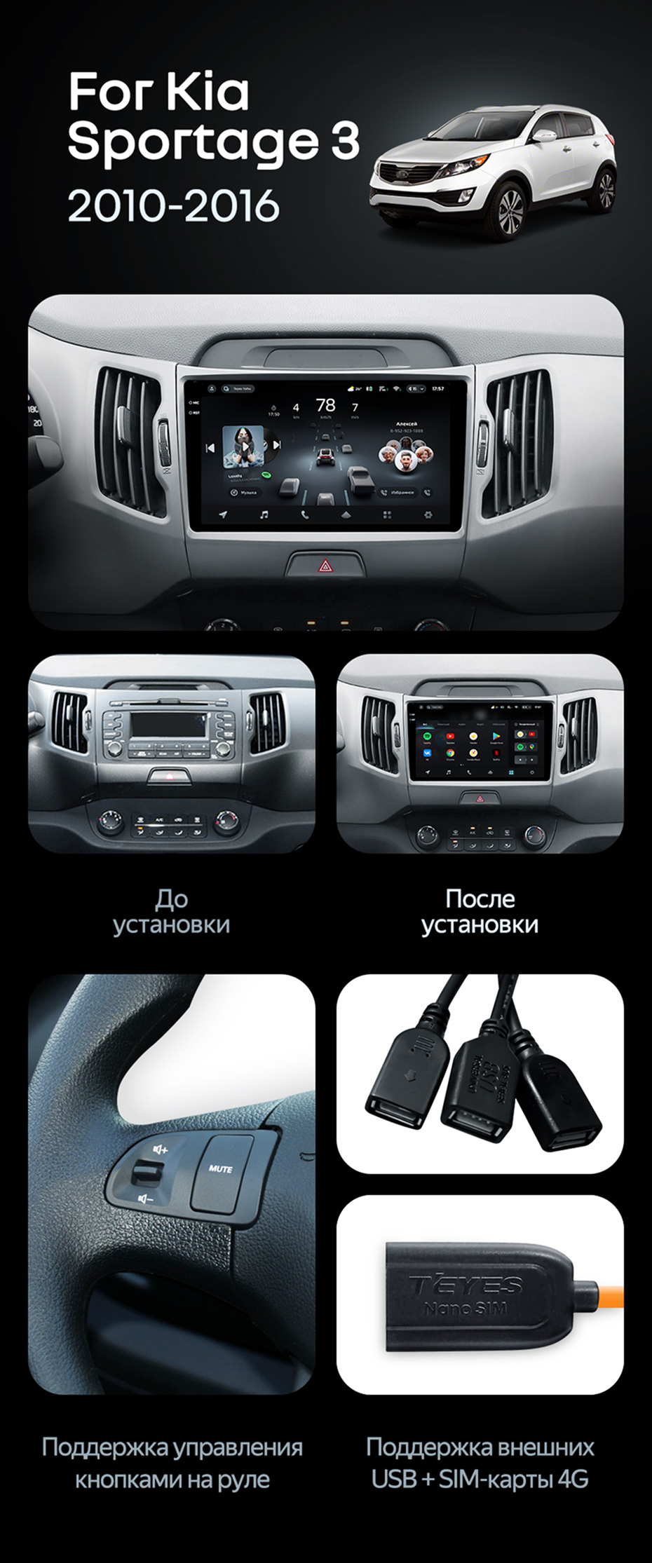 Штатная магнитола Teyes CC4 Pro 8/128 Kia Sportage 3 SL (2010-2016) Тип-A - купить всего за 57 790 руб. в интернет-магазине в Новороссийске Teyes.com.ru. ✓ Самый лучший выбор мультимедиа ✓ Лучшая замена штатному ГУ ✓ Тел. +7 (800) 775-31-74