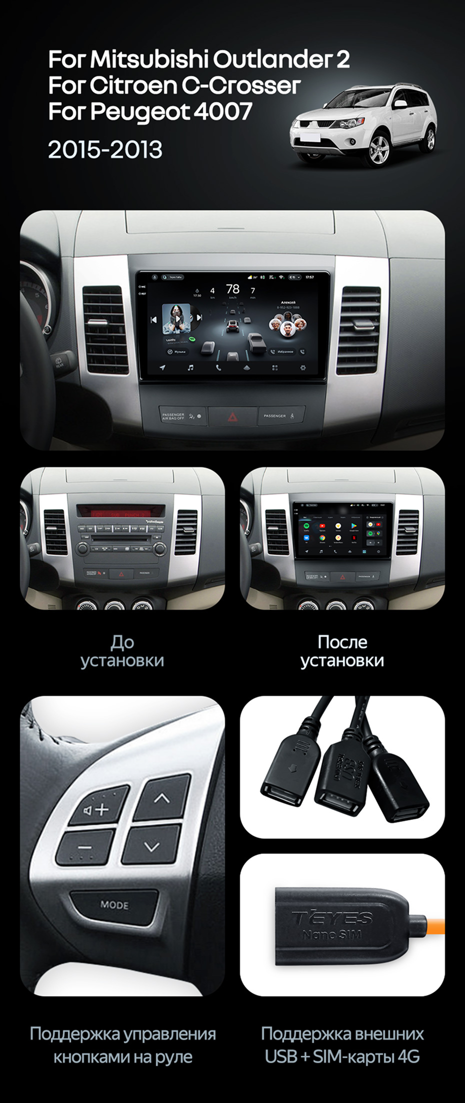 Штатная магнитола Teyes CC4 Pro 8/128 Mitsubishi Outlander 2 (2005-2011) Тип-B - купить всего за 59 440 руб. в интернет-магазине в Новороссийске Teyes.com.ru. ✓ Самый лучший выбор мультимедиа ✓ Лучшая замена штатному ГУ ✓ Тел. +7 (800) 775-31-74