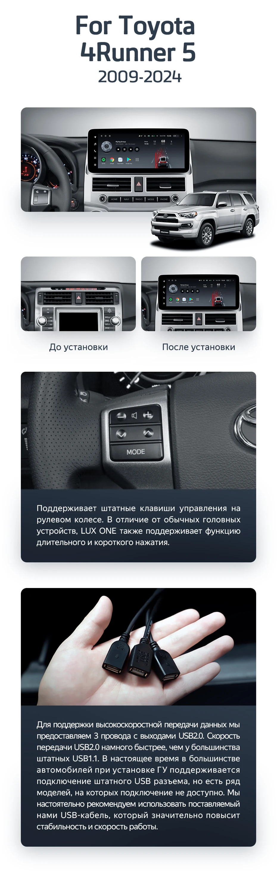 Штатная магнитола Teyes LUX ONE 360 6/128 Toyota 4Runner 5 N280 (2009-2024) - купить всего за 60 300 руб. в интернет-магазине в Новороссийске Teyes.com.ru. ✓ Самый лучший выбор мультимедиа ✓ Лучшая замена штатному ГУ ✓ Тел. +7 (800) 775-31-74