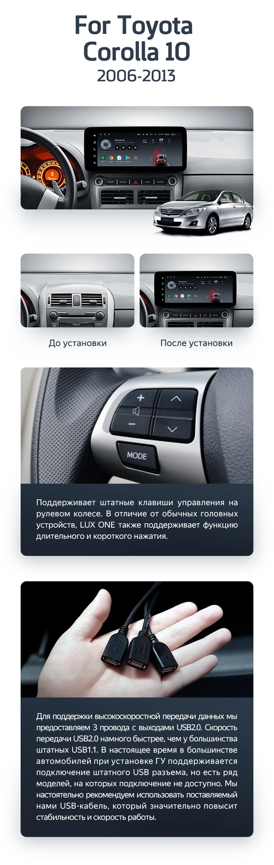 Штатная магнитола Teyes LUX ONE 4/64 Toyota Corolla 10 E140 E150 (2006-2013) - купить всего за 41 100 руб. в интернет-магазине в Новороссийске Teyes.com.ru. ✓ Самый лучший выбор мультимедиа ✓ Лучшая замена штатному ГУ ✓ Тел. +7 (800) 775-31-74